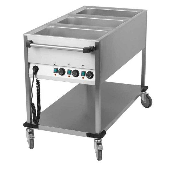 Chariot Mobile / Bain Marie Chauffant 3 Cuves GN 1/1