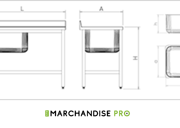 Plonge en acier inoxydable AISI 304. Pieds réglables sur 26 mm. Pieds carrés 40×40 mm. Structure soudée améliorant la durabilité