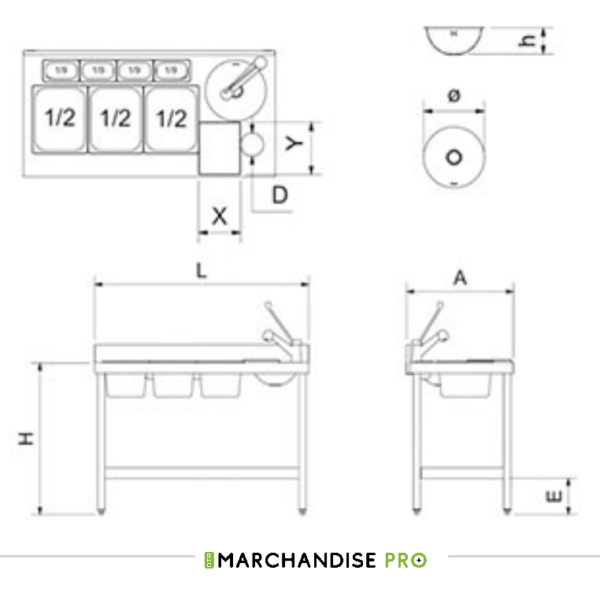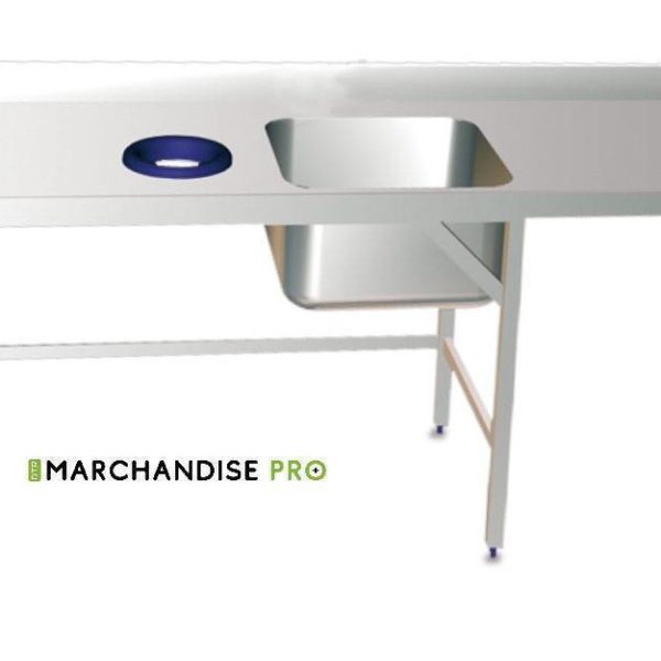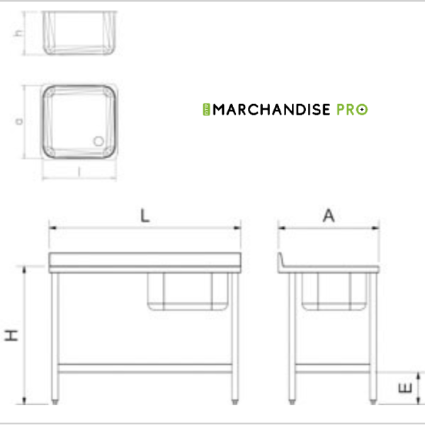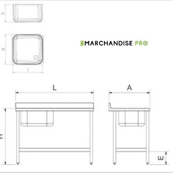 Table adossée de Chef en Inox – Bac à Droite Dessus en acier inoxydable épaisseur 1,5 mm insonorisé et renforcé.