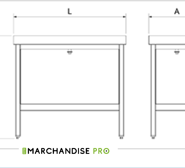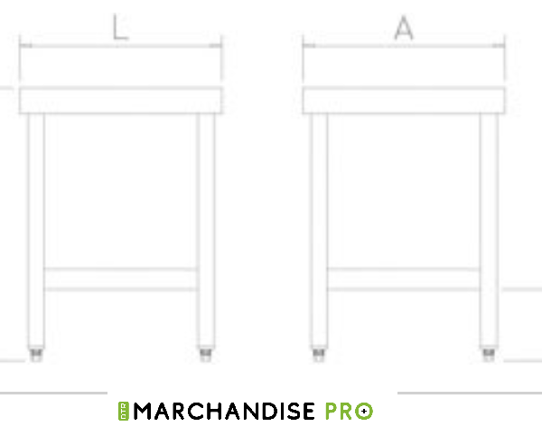 Table adossée en Inox – Avec étagère Basse Dessus en acier inoxydable épaisseur 1,5 mm insonorisé et renforcé. Pieds carrés